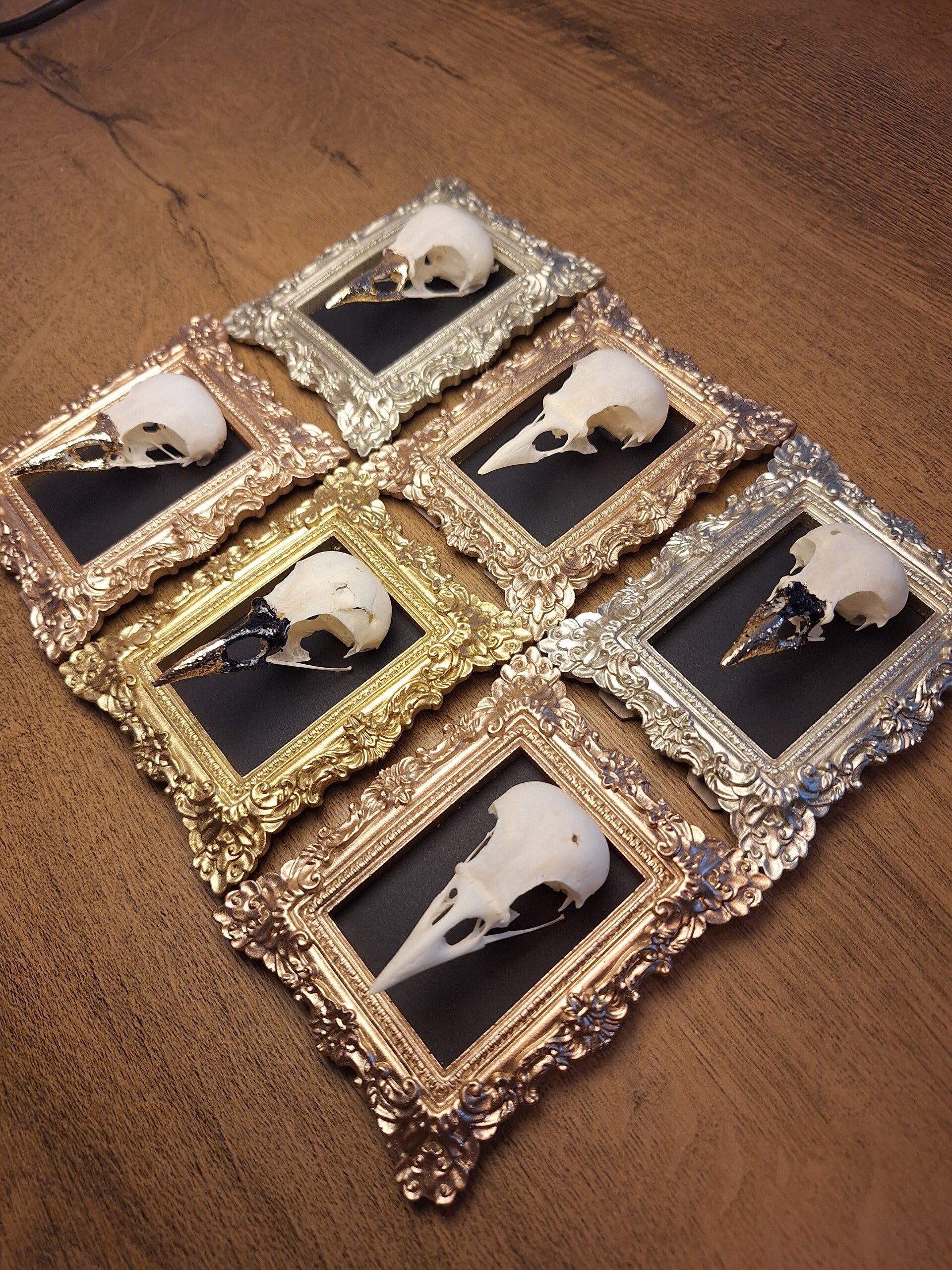 Schedel van kauw in gouden lijstje 6